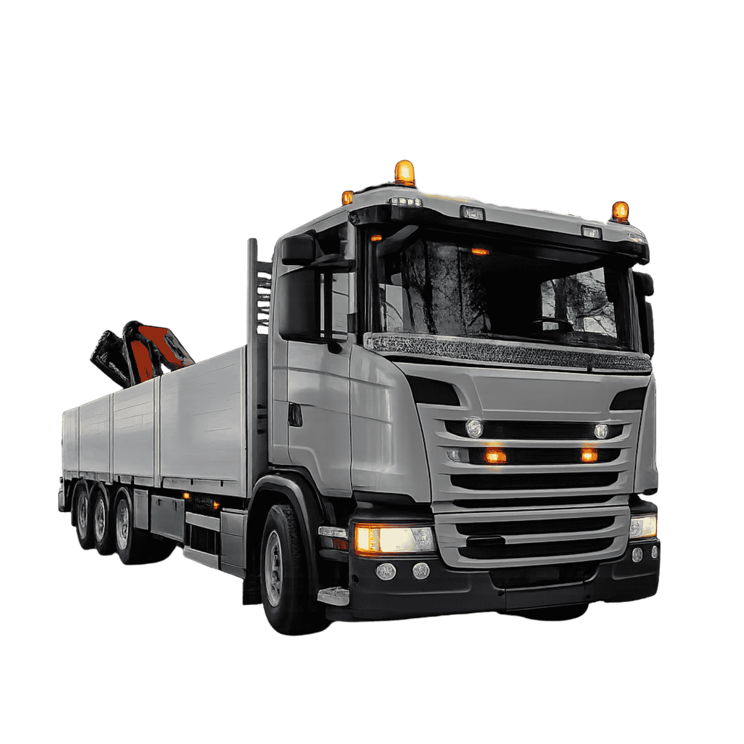 | Montage dos cabine | Le plateau reste entièrement libre pour le chargement : matériaux, palettes, éléments longs — pas de compromis entre la grue et la charge |